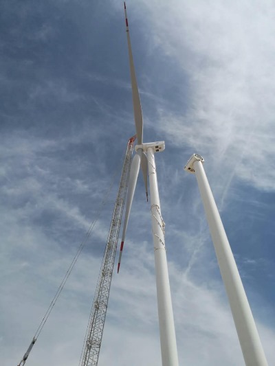 6月25日,中复连众自主研发的LZ76-3.X/4.X型叶片在新疆乌鲁木齐盐湖天润二期风电场成功挂机运行,该叶片匹配金风科技GW155-4.XMW型风电机组。