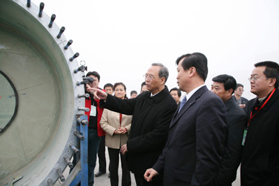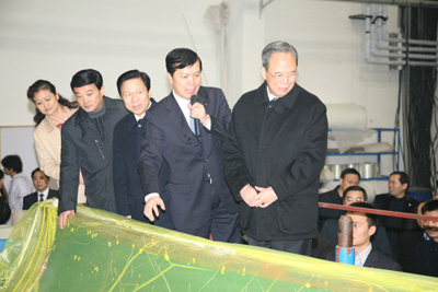 中复连众复合材料集团有限公司是国内最大的风力发电机叶片生产厂家,去年4月成功生产出国内第一套1.5兆瓦风力发电机叶片,今年可生产叶片1000片。不久前,该公司又通过收购德国风力叶片企业,研发生产出了2兆瓦风力发电机叶片,现已能够生产6种类型10个叶型的叶片,基本满足国内不同条件风力电厂的需要。曾培炎兴致勃勃地考察了该公司风力叶片生产车间,鼓励企业大力推进风电技术和设备的自主化,提高市场竞争力。在中复神鹰碳纤维有限公司,曾培炎仔细了解该公司正在实施的万吨碳纤维项目建设情况。碳纤维是我国“十一五”期间重点发展的新材料产业,也是我国实施科技产业化的重点攻关项目。听说该项目首期投资6.5亿元,将在两年内形成年产3000吨碳纤维的生产规模,曾培炎十分高兴,他希望中复神鹰广大员工继续努力,争取早日建成万吨碳纤维生产基地,为我国新材料产业发展做出更大的贡献。