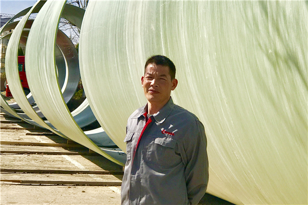 2017年6月,阿勒泰吉木乃县扬水工程一期的DN1600夹砂管道生产顺利完工,期间共计生产和对接完成DN1600各种压力管道12.7公里;2017年8月,夏兴宏及团队又投入到扬水二期的生产,二期的管道数量达到27.7公里,截至2017年底,他们在有限的厂区内生产并屯满了近5公里管道。