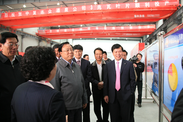 2010年5月12日,酒泉国家风电装备高新技术产业化基地正式挂牌,标志着甘肃新能源基地建设进入了一个新的阶段。甘肃省委书记、省人大常委会主任陆浩出席挂牌仪式并为基地揭牌,省委副书记、省长徐守盛也参加了仪式。随后陆浩、徐守盛在中国复合材料集团有限公司董事长兼总经理张定金的陪同下视察了中复连众酒泉叶片基地。