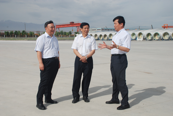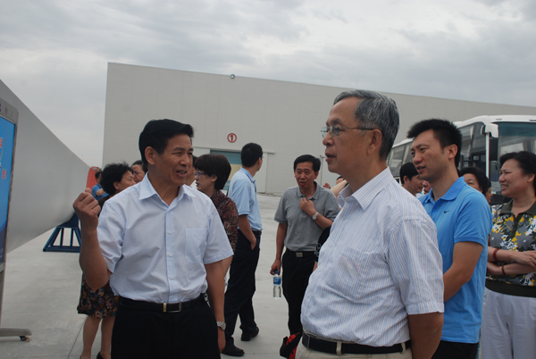 7月15-16日,中国建材联合会四届七次会长全体会议在甘肃酒泉召开。会议期间,中国建筑材料联合会会长张人为、国务院国有资产监督管理委员会国有大型企业监事会原主席乔龙德、中国建材集团董事长宋志平及其他与会代表视察了中复连众风机叶片外埠生产基地之一—中复连众(酒泉)公司。中国复材集团董事长、总经理张定金陪同考察。