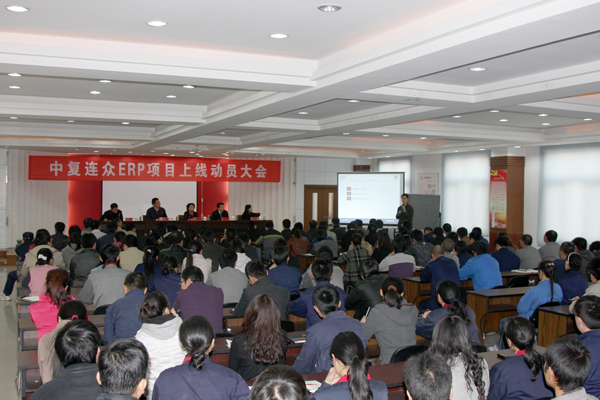 10月28日,中复连众在科研楼五楼会议室召开ERP项目上线动员大会。中复连众董事长任桂芳、总经理乔光辉、东软公司总监付春江、慧德监理公司项目经理王凌虹,全体管理人员、车间工艺员、核算员、班组长代表出席会议。东软公司郭广峰项目经理就上线策略与上线计划、上线准备情况、ERP系统作业规范做了说明。中复连众副总工程师、信息管理部主任田超凯主持会议。