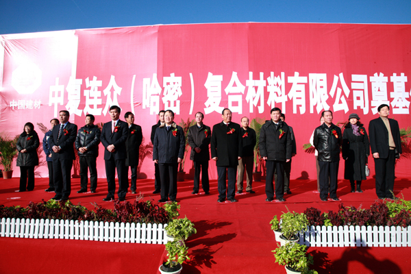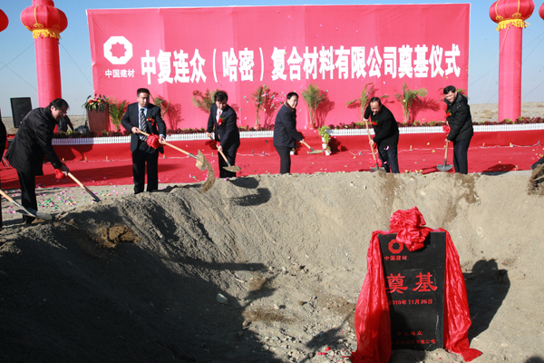 中国建材集团副总经理郭朝民、中国建材报社社长陈才来、中国复合材料集团公司董事长、总经理张定金、哈密地委书记郭连山、哈密地区政协工委主任魏天哲、哈密行署副专员牙森·斯地克等出席奠基仪式。中国复合材料集团公司副总经理、连云港中复连众集团公司董事长任桂芳主持仪式。
