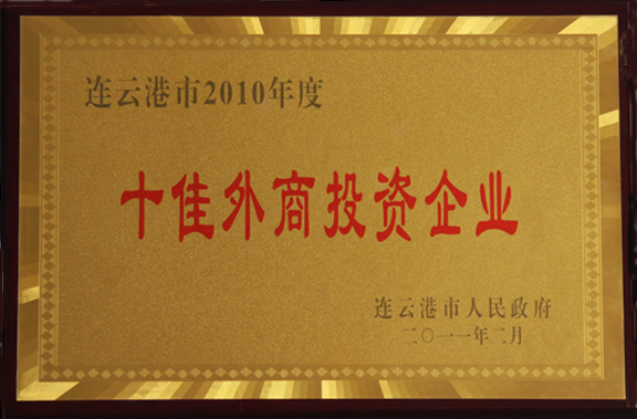 近日,在连云港市政府召开的2010年度商务工作会议上,中复连众荣获“2010年度十佳外商投资企业”和“2010年度十佳对外贸易企业”称号,这是我公司首次获此殊荣。
