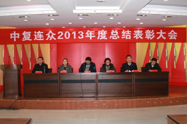1月28日,中复连众隆重召开2013年度总结表彰大会,全体行管人员及车间班组长以上人员参加会议。会议传达了中国建材集团、中国复材集团2014年工作会议精神,公司总经理乔光辉代表经营班子作了题为《坚持稳中求进,深化管理提升,优质高效全面完成年度目标任务》的工作报告。中国复材集团副总经理、中复连众董事长、党委书记任桂芳出席会议并做重要讲话。会议由副总经理王彤兵主持。
