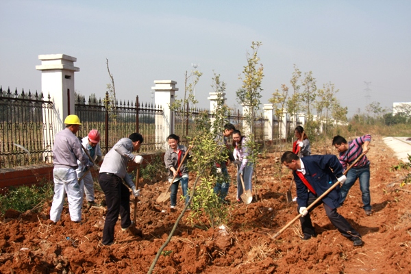 虽然当天气温较高、风比较大,但并没有影响党员们植树的热情,在绿化师傅的指导下,大家分工有序,挖树苗、移树苗、植树苗,挥动铁锨填土,有的直接用手搬石头和泥块。希望通过党员们的引领作用,越来越多人爱护企业的一草一木、一花一树。
