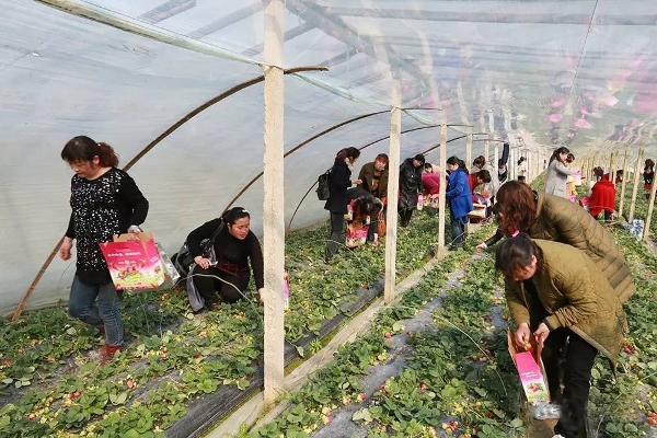 3月8日下午,百余名女职工来到东海县黄川镇,走进温室大棚采摘草莓,草莓园大棚内,翠绿的草莓叶、鲜红诱人的草莓,女职工们禁不住这满园春色的诱惑,立刻“忙碌”了起来,大家一边采摘、一边品尝、一边拍照,尽情地享受采摘的乐趣。